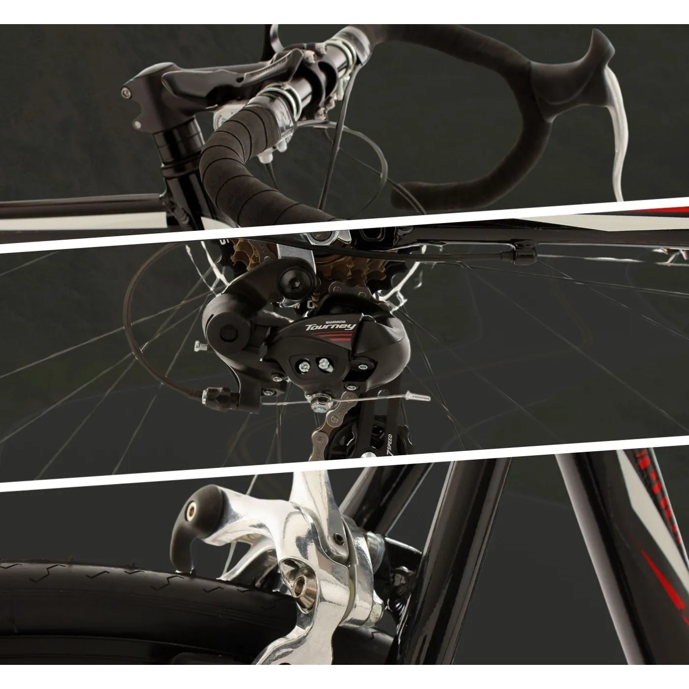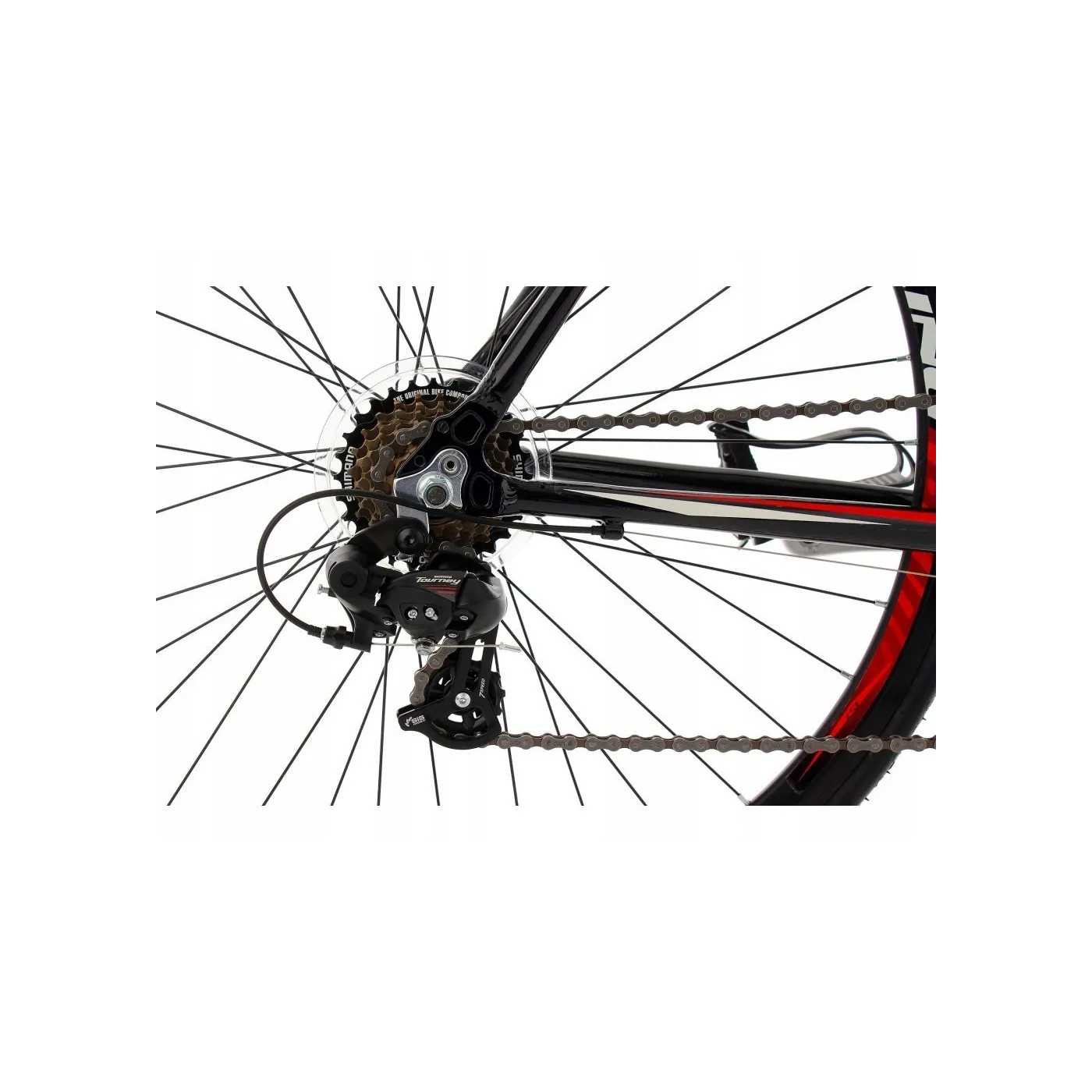 🚲🖤 Rower szosowy Ks Cycling Euphoria to doskonały wybór dla wszystkich miłośników szybkiej jazdy po asfalcie. Jego czarny design z czerwonymi naklejkami nadaje mu agresywny i sportowy wygląd, który na pewno przyciągnie uwagę innych rowerzystów.