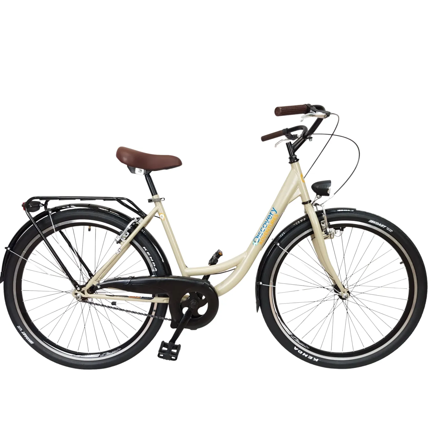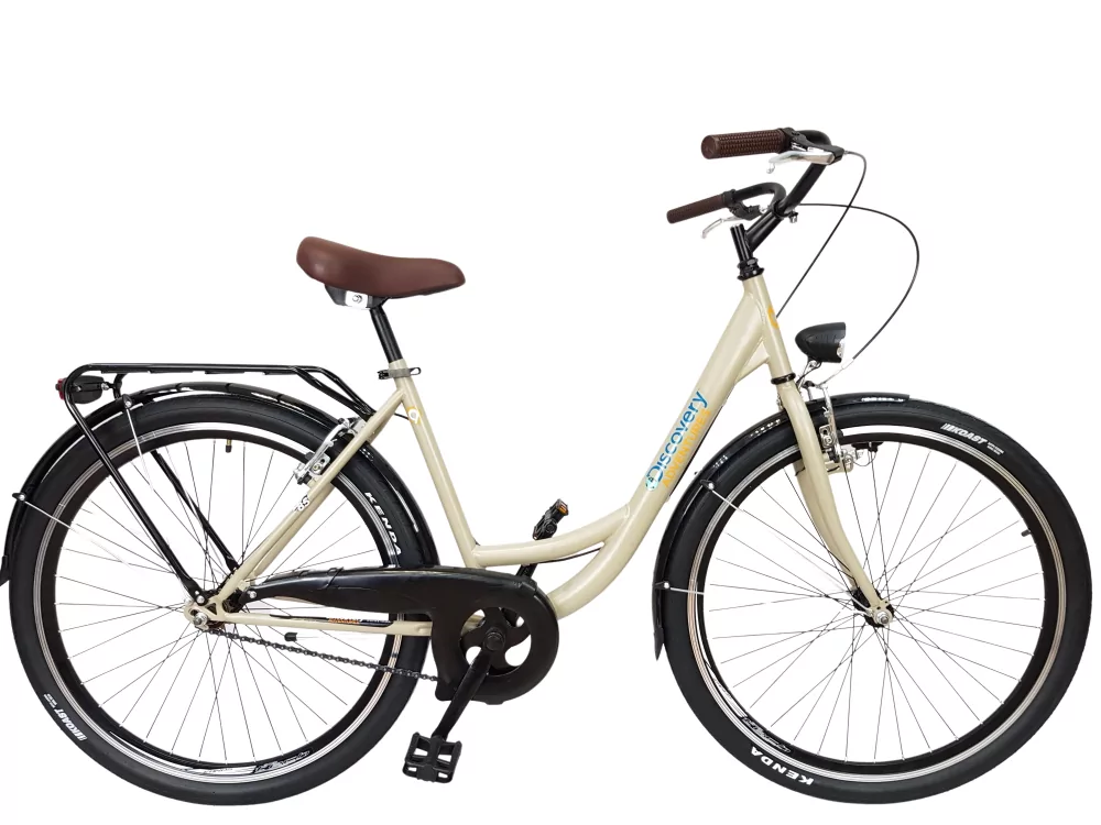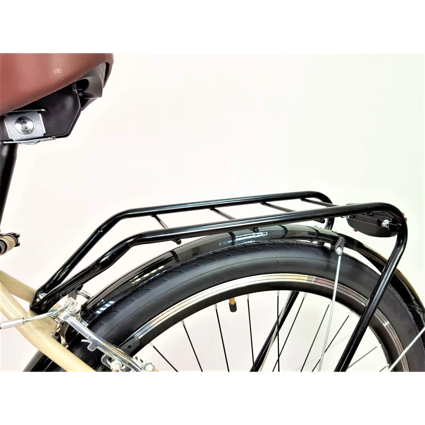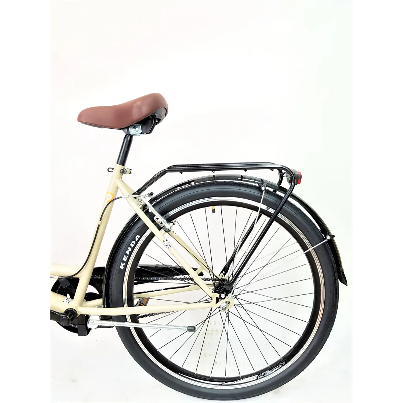 Idealnie dopracowane detale, sprawiają, że zauroczy wszystkich. Rower posiada dwa hamulce V-brake, profilowaną kierownicę w stylu retro, szerokie, wygodne siodełko oraz bagażnik i koszyk. Całość utrzymana jest w klasycznym, beżowym kolorze z czarnymi i brązowymi akcentami.