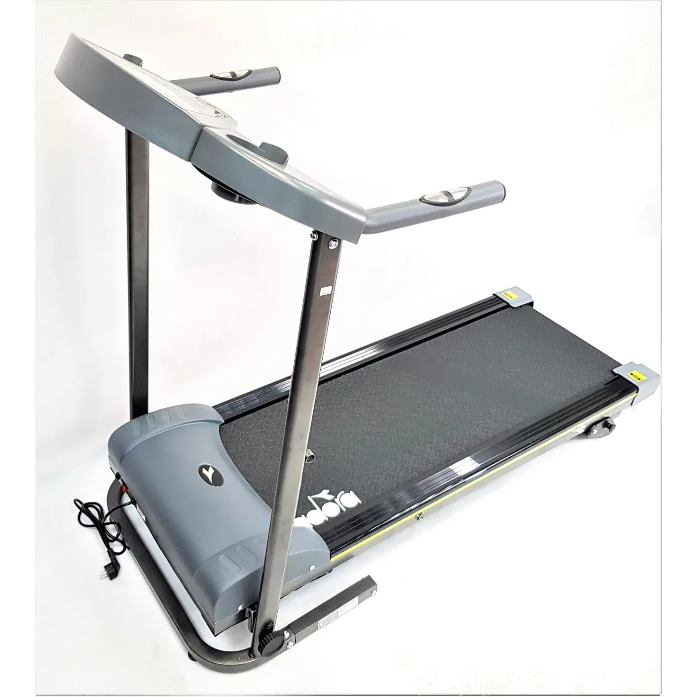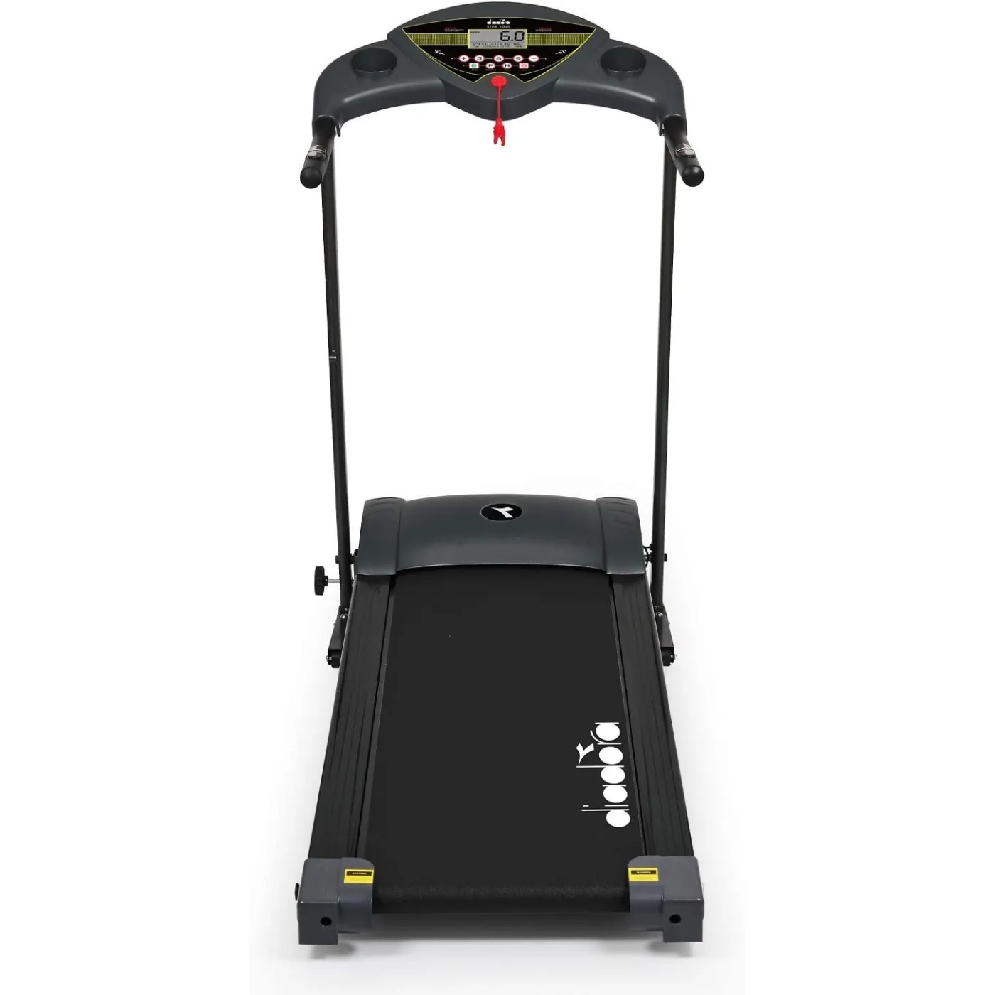 Diadora Star 1000 to wstępnie zmontowana bieżnia o zmniejszonych wymiarach, odpowiednia dla osób mających problemy z przestrzenią. Pomimo niewielkich rozmiarów bieżnia jest wyposażona we wszystkie akcesoria niezbędne do prawidłowego i urozmaiconego treningu: 4 programy prędkości, kalorii, czasu i dystansu, 3 programy docelowe oraz wykrywanie tętna.
