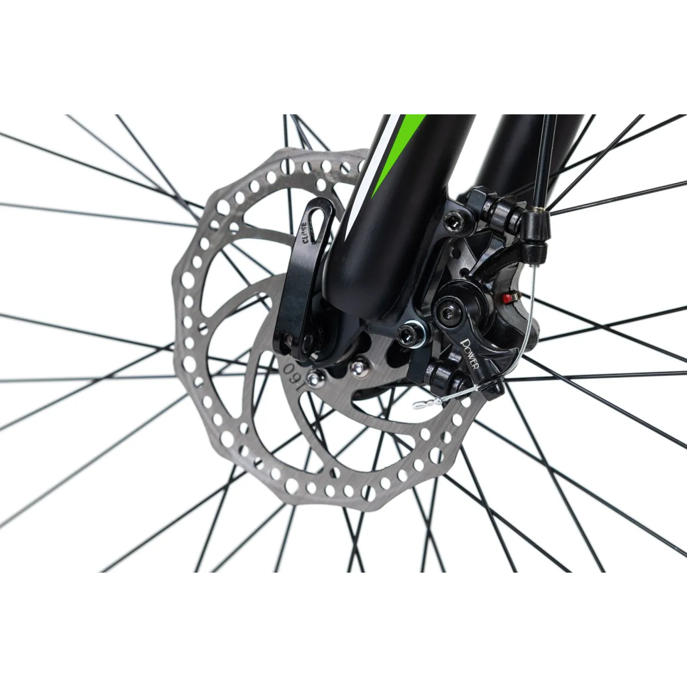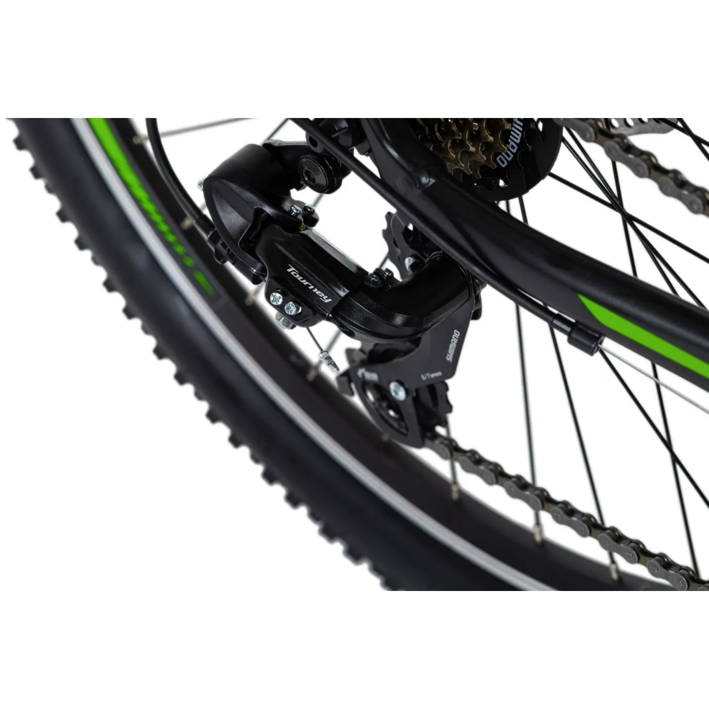 ✨ Hamulce tarczowe umożliwiają bezpieczne wyhamowanie w każdej sytuacji, a amortyzowany widelec zapewnia odpowiedni komfort. Rower wyposażono również w 21-biegową przerzutkę z komponentami Shimano.