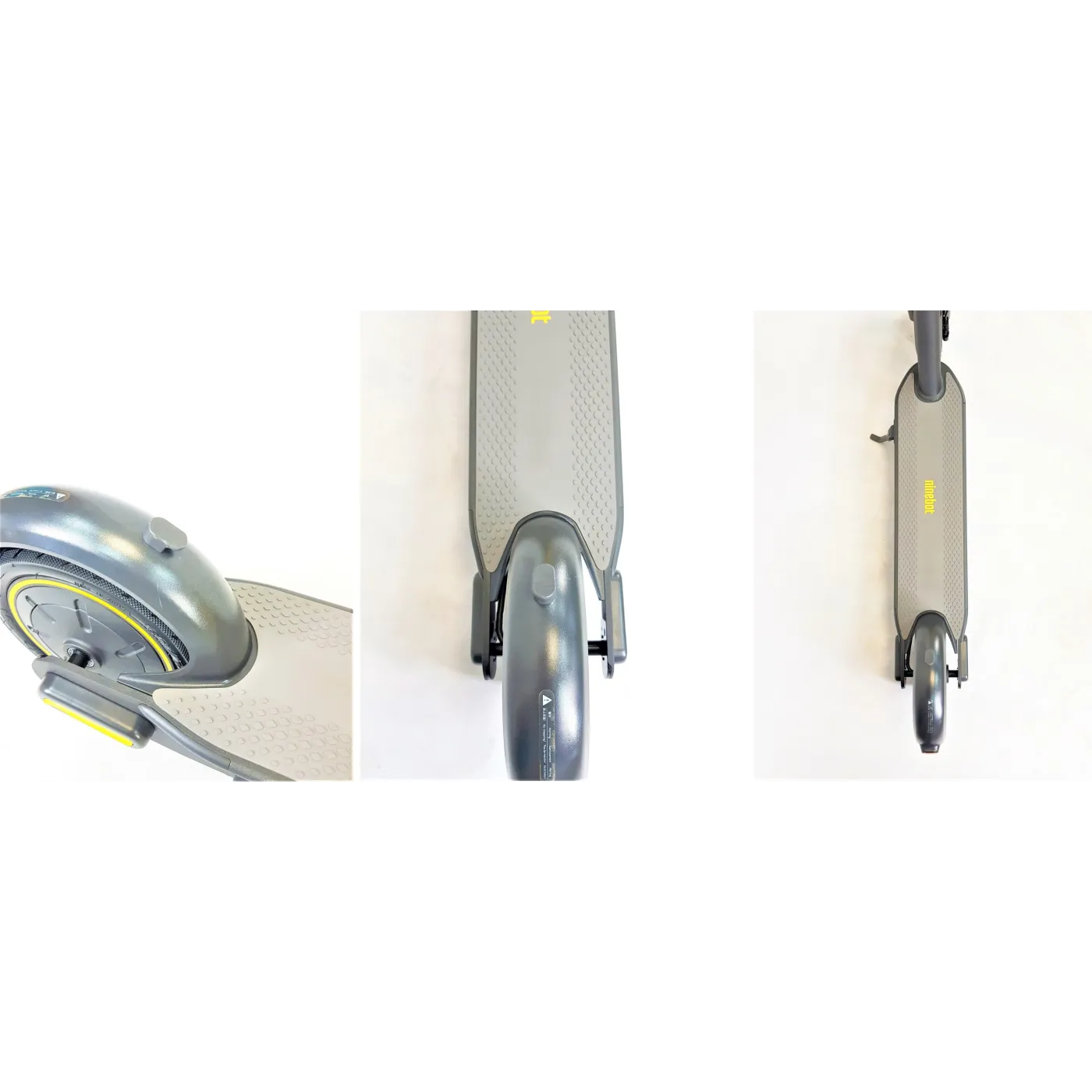 KickScooter MAX jest wyposażony w akumulator dalekiego zasięgu, włączając w to dwa rozwiązania dla lepszego ładowania i osiągnięcia największego maksymalnego zasięgu do 65 km. Oferuje możliwość osiągnięcia największego zasięgu z modeli dostępnych na rynku, przy maksymalnej prędkości do 25 km/h. 10 calowa bezdętkowa pneumatyczna opona zapewni przyjemną jazdę i będzie wymagała mniej konserwacji: jest zaopatrzona w dodatkową warstwę żelową, co zmniejsza ryzyko jej przebicia.