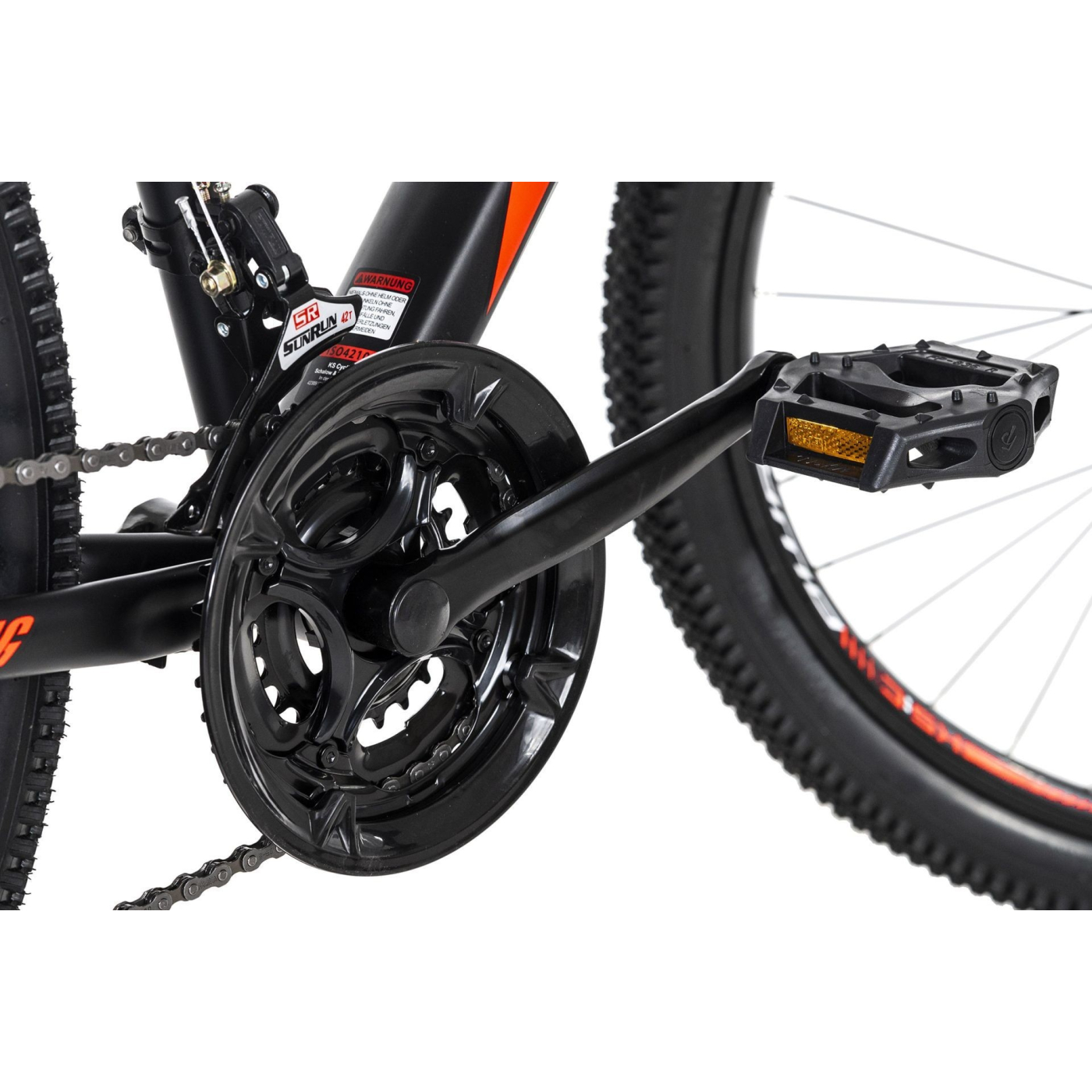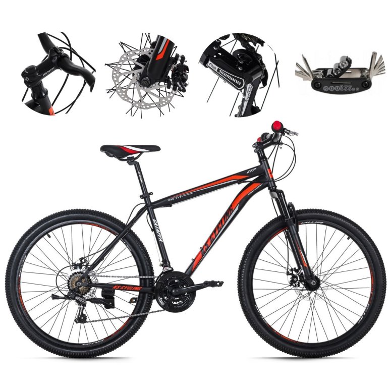 💎 To model doskonale przemyślany: Hardtail MTB „Catappa” firmy KS Cycling jest całkowicie czarny – odświeżony kolorowymi detalami, które przyciągają uwagę wszystkich.