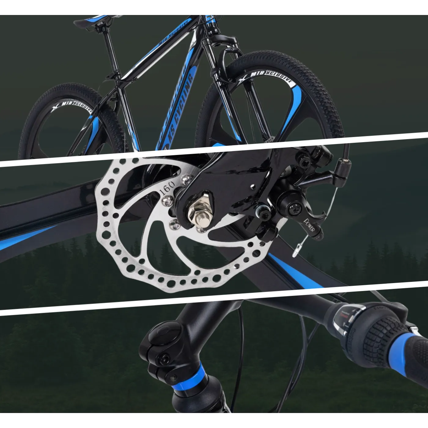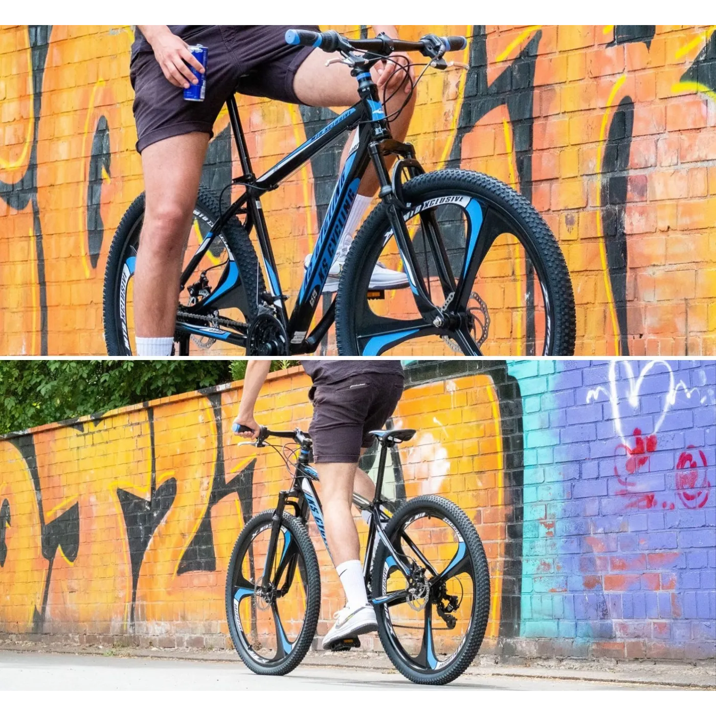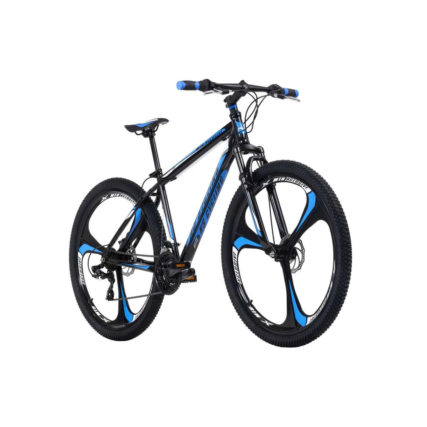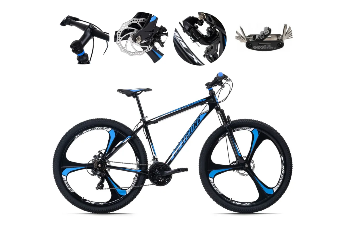 👉 Magnezowo- aluminiowe koła o rozmiarze 29" x 2.25" gwarantują stabilność i komfort podczas jazdy, a wygląd w kolorze czarnym, z białymi i niebieskimi wstawkami z pewnością przyciąga spojrzenia. Dodatkowo rower wyposażony jest w dzwonek, który zwiększa bezpieczeństwo podczas jazdy w ruchu miejskim