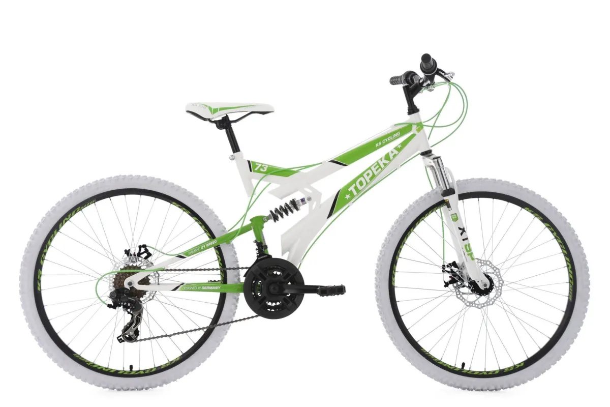 Model Topeka od firmy KS Cycling to rower jest idealny zarówno dla mężczyzn, jak i kobiet. Kolorowe detale na białej ramie oraz białe opony sprawiają, że rower przyciąga wzrok! Mechaniczne hamulce tarczowe na przednim i tylnym kole zapewniają dobre hamowanie. Dodatkowo model ten posiada pełne amortyzowane zawieszenie i jest wyposażony w 21-biegową przerzutkę Shimano.