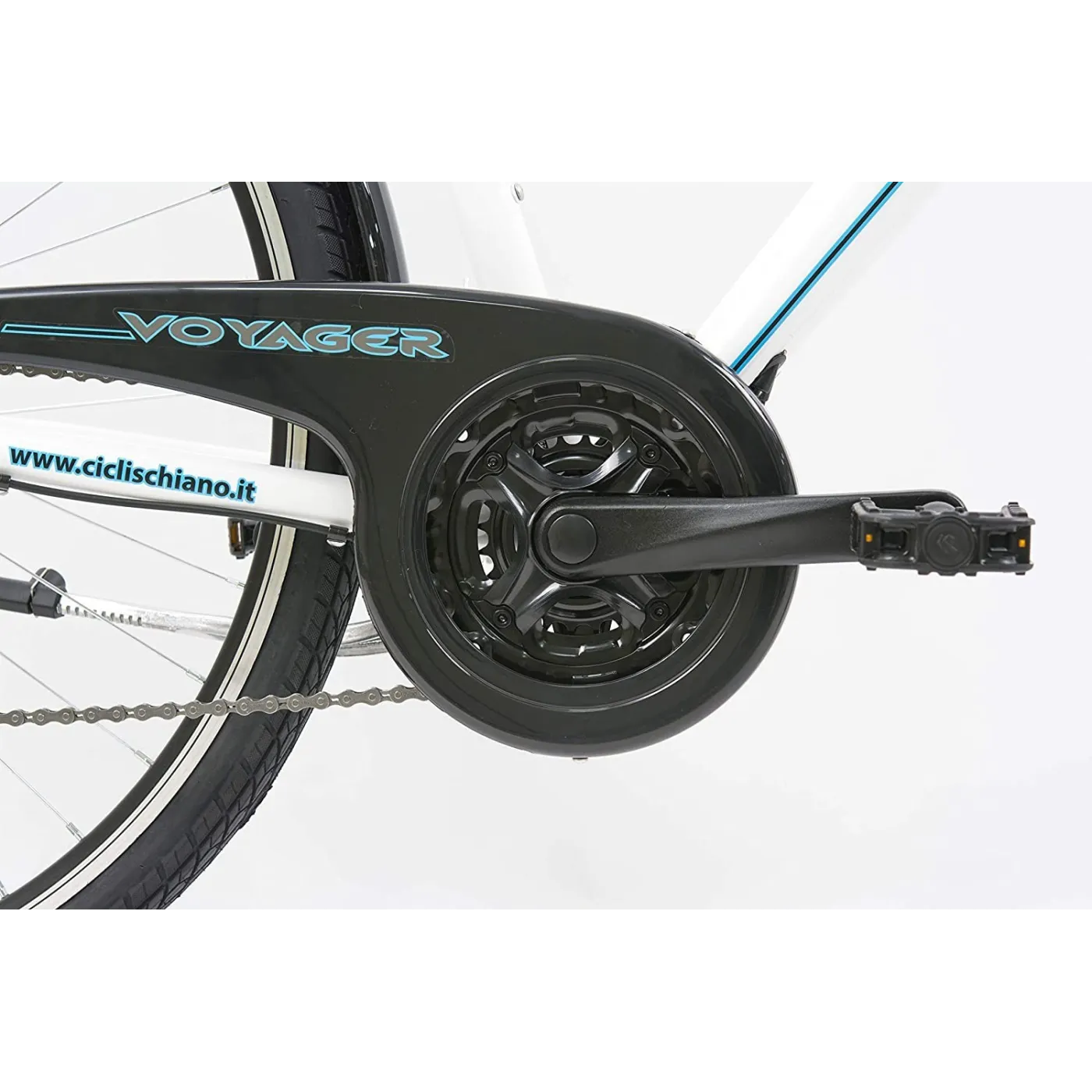 F.lli Schiano Voyager to 28-calowy rower trekkingowy, który sprawdzi się idealnie na jazdę po mieście jak i dłuższą wycieczkę. Ma białą ramę z eleganckimi kolorowymi detalami. Dzięki 18-biegowej przerzutce pochyłości nie będą stanowić już problemu. To wszystko sprawia, że wyprawa z Voyager będzie jedynie przyjemnością.