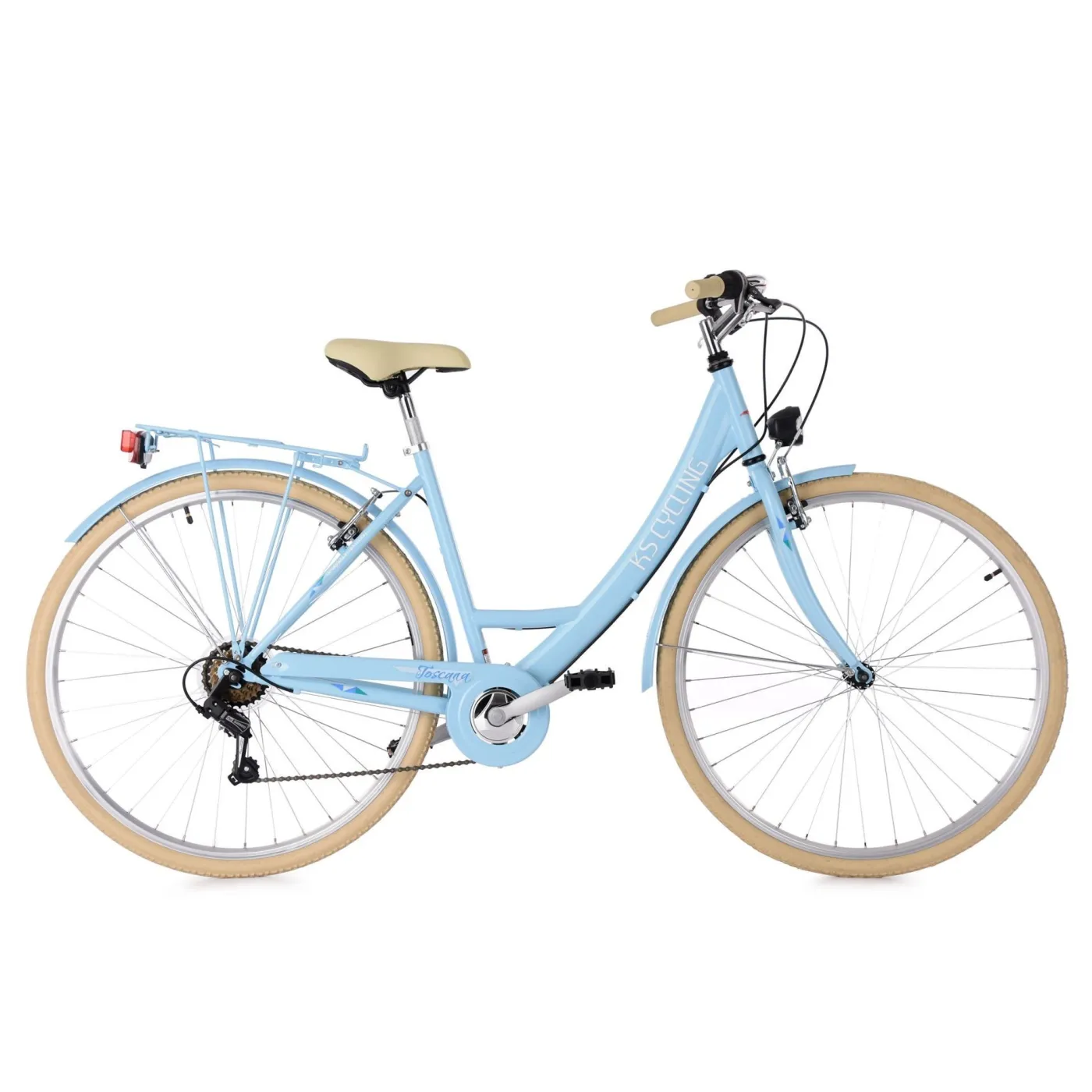 26-calowy damski rower miejski Toscana firmy KS Cycling wnosi kolor do rowerowego życia! Dzięki 26-calowym kołom i małej ramie jest idealny również dla mniejszych rowerzystek. Zastosowanie 6-biegowej przerzutki Shimano, oświetlenia oraz poręcznego bagażnika sprawia, że rower staje się kompletny.