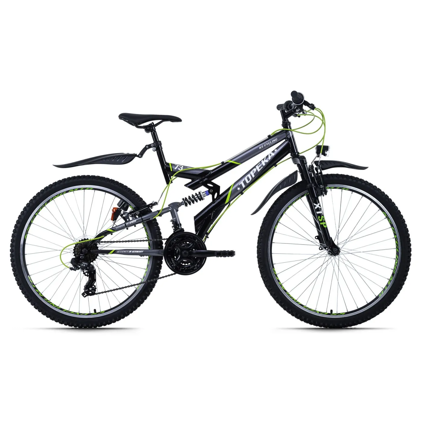 Model Topeka od firmy KS Cycling jest idealny zarówno dla mężczyzn, jak i kobiet - rower, który po prostu daje frajdę z jazdy! Solidne komponenty, tylne zawieszenie i amortyzowany widelec zapewniają komfort i bezpieczeństwo. Rower górski jest wyposażony w niezawodną 21-biegową przerzutkę z obrotowymi manetkami. Dzięki temu poradzi sobie doskonale w każdych warunkach. Dodatkowo Topeka zadba także o twoje bezpieczeństwo na drodze - rower jest, oprócz błotników, wyposażony w niezawodny system oświetlenia.