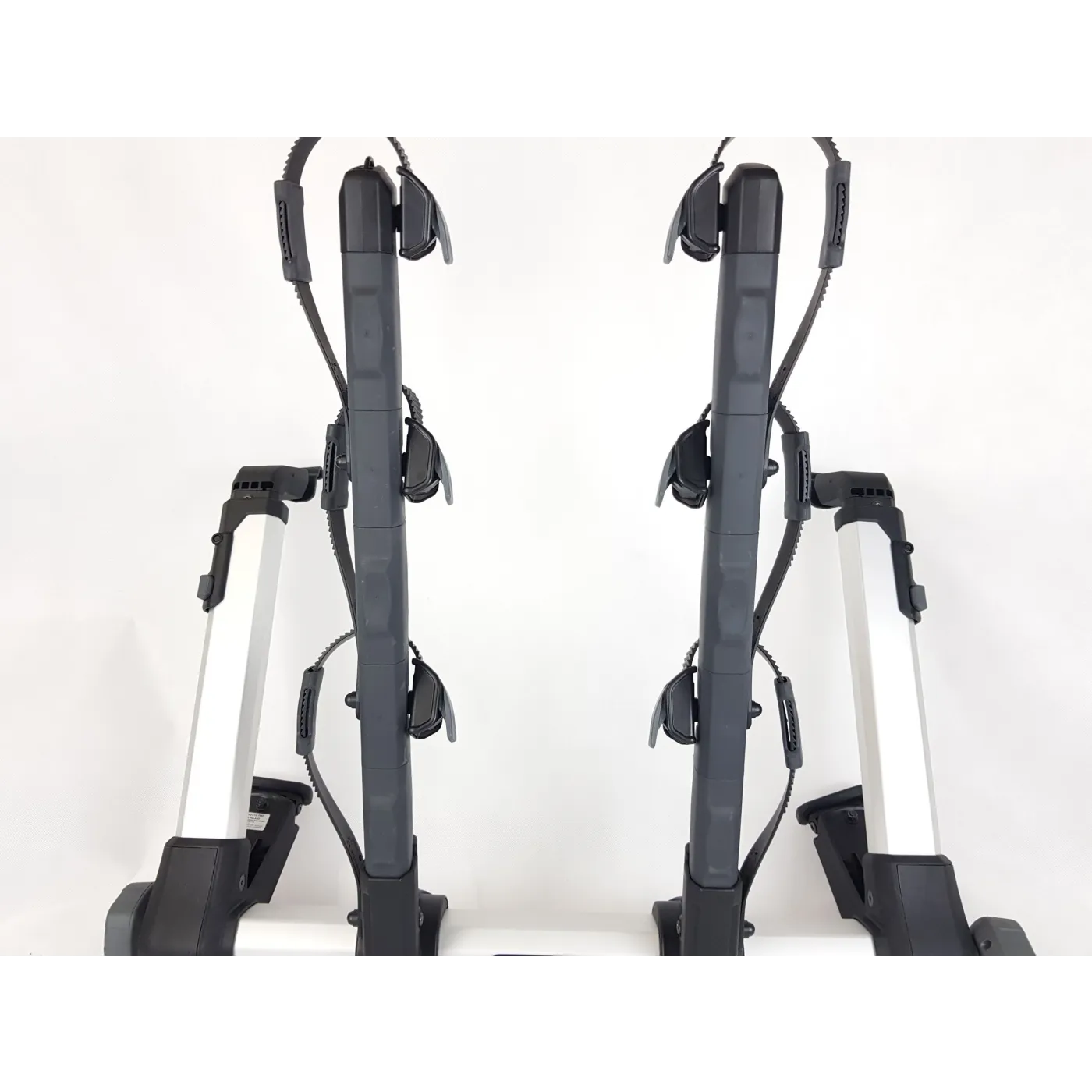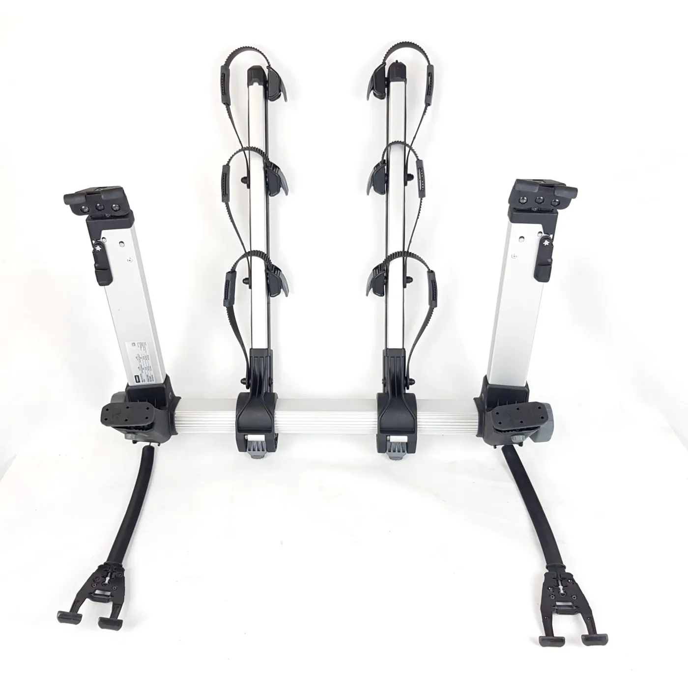 Thule OutWay Hanging został zaprojektowany, aby zapewnić szybki i łatwy sposób transportu nawet trzech rowerów w dowolne miejsce. Pasuje do bagażnika Twojego samochodu – jeśli nie masz haka holowniczego lub jeśli chcesz wykorzystać dach pojazdu. Mocowanie na dwa haki i solidne stalowe linki z gumowymi osłonami (na wszystkich powierzchniach styku z samochodem) sprawiają, że ten bagażnik rowerowy jest odpowiednio dobrze przymocowany. Dodatkowo OutWay Haning 3 mieści różne ramy rowerowe/geometrie, w tym mniejsze rowery dziecięce dzięki regulowanym ramionom.