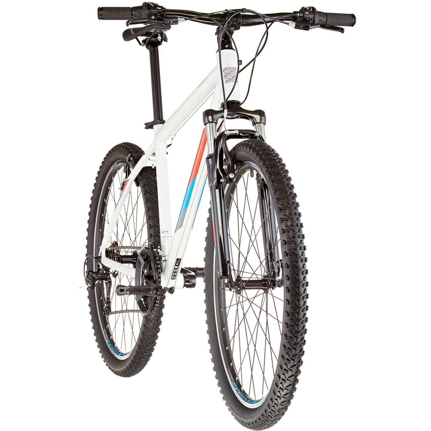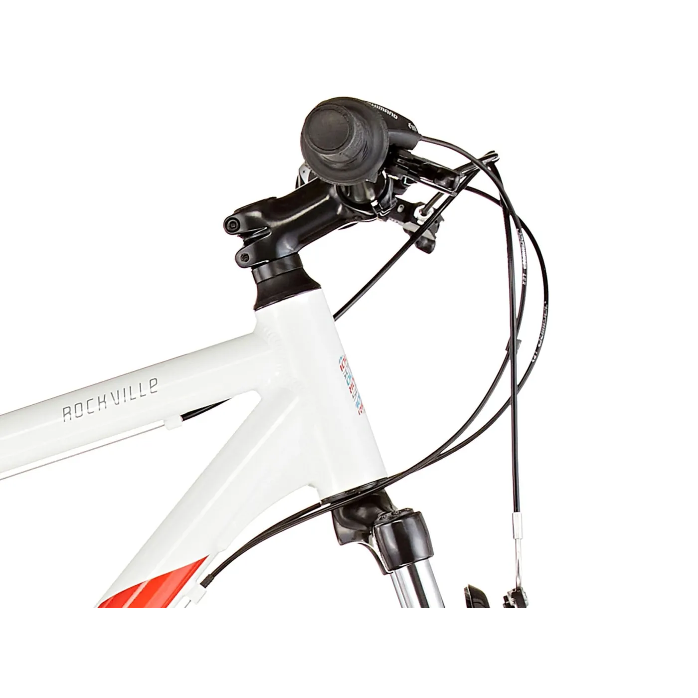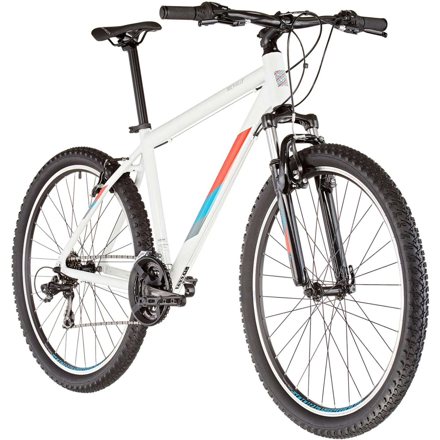 Rockville to rekreacyjny i codzienny rower górski, który wyróżnia się nie tylko korzystnym stosunkiem ceny do wydajności, ale także przekonuje jakością i komfortem na dłuższą metę oraz wszechstronnością zarówno w terenie, jak i w mieście. Lekka aluminiowa rama ma nie tylko dobrze wyważone funkcje, które zapewniają komfort potrzebny na początek, ale jest również ozdobiona w udany, sportowy, świeży, a jednocześnie ponadczasowy design. Zastosowane niezawodne 21-biegowe przerzutki Shimano umożliwiają użytkownikowi idealne dopasowanie modelu jazdy do panujących na drodze warunków.
