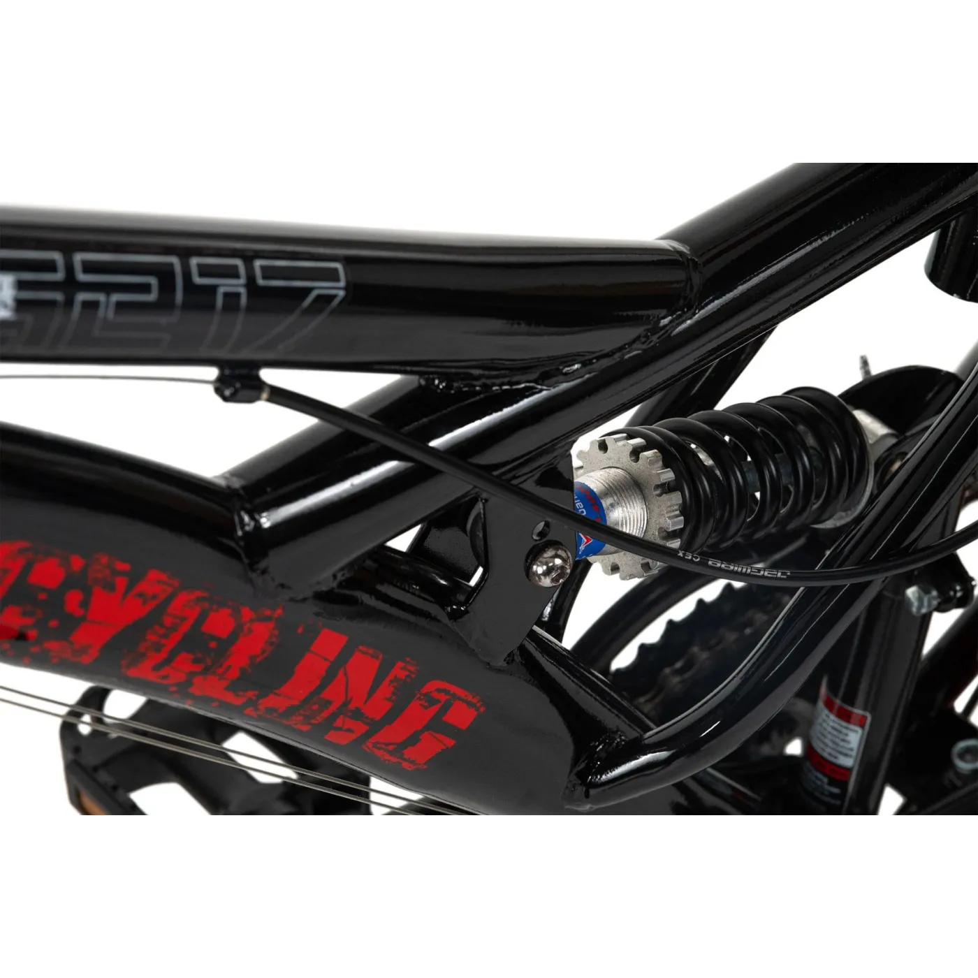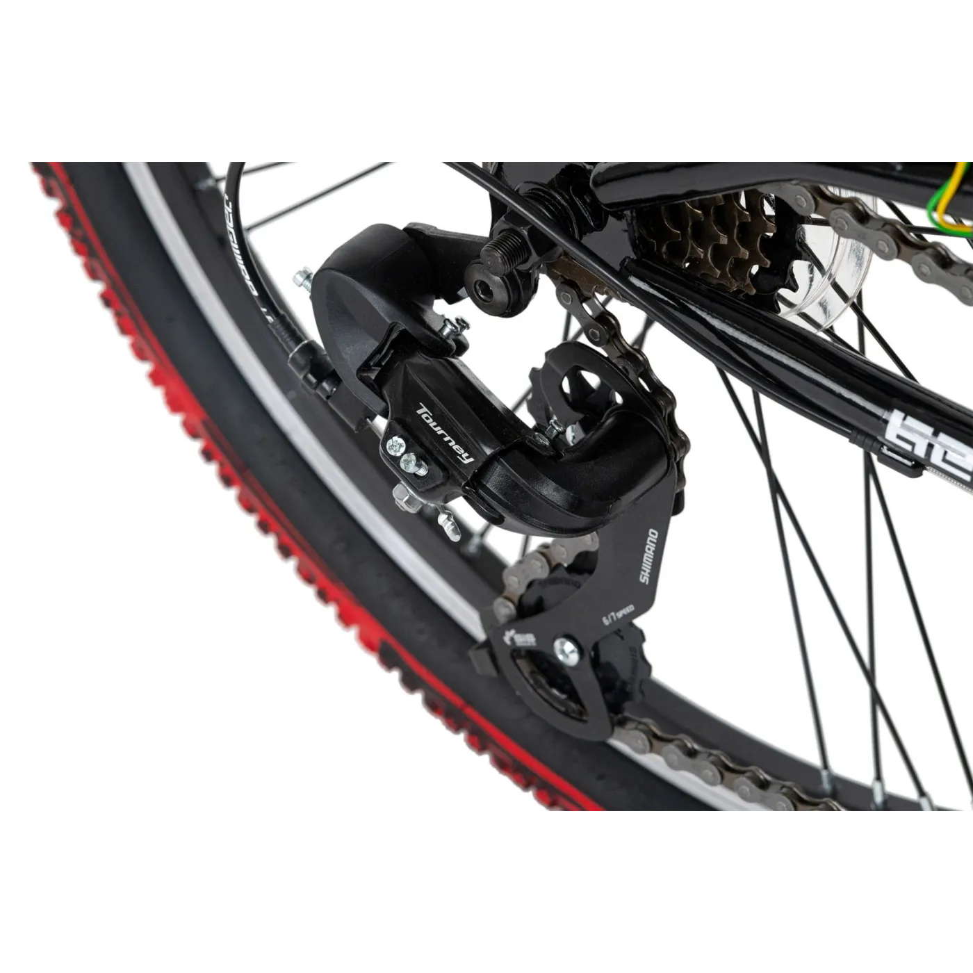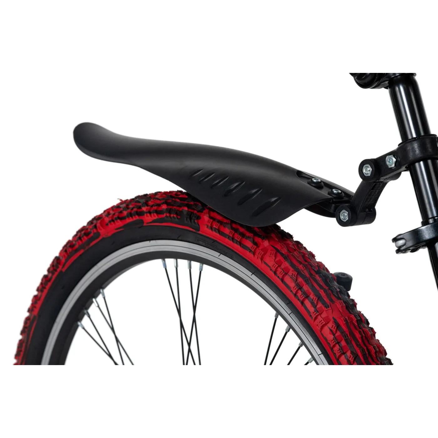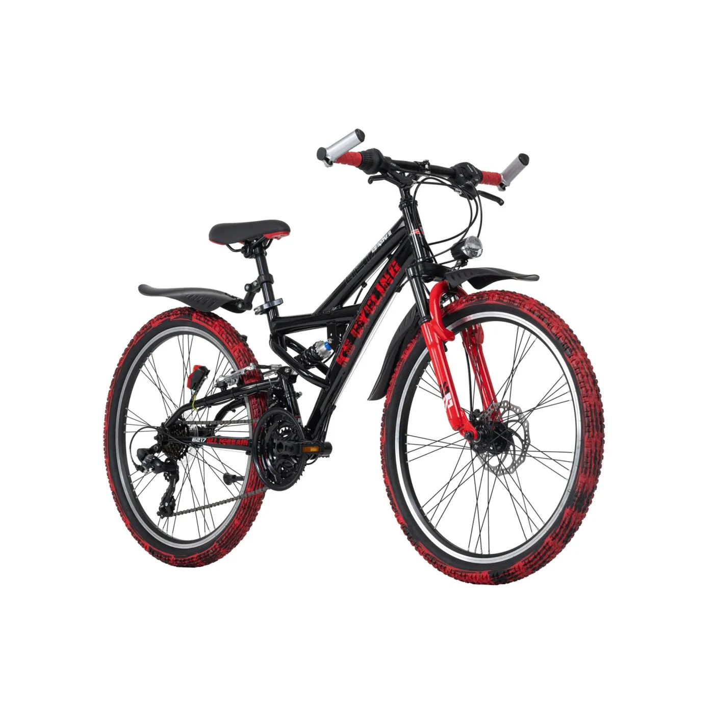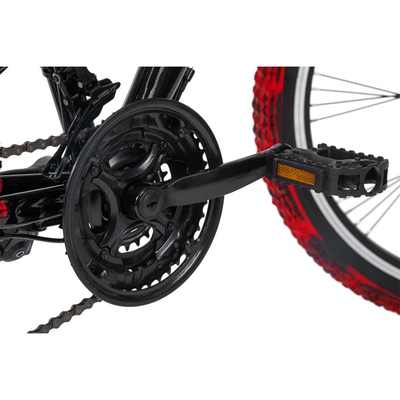 MTB Crusher 24 to dziecięcy rower z pełnym zawieszeniem, który zapewni twojemu dziecku komfort, wygodę i bezpieczeństwo podczas każdego górskiego wypadu. Ten jednoślad pozwoli zachować kontrolę nawet na wyboistych drogach. Przedni oraz tylny hamulec V-brake, 21-biegowe przerzutki Shimano, a także niebanalna, mocna kolorystyka dodadzą pewności podczas wymagających terenów. Zastosowane opony Muddy Red również robią wrażenie: malowanie zostało nałożone ręcznie na każdą z nich!