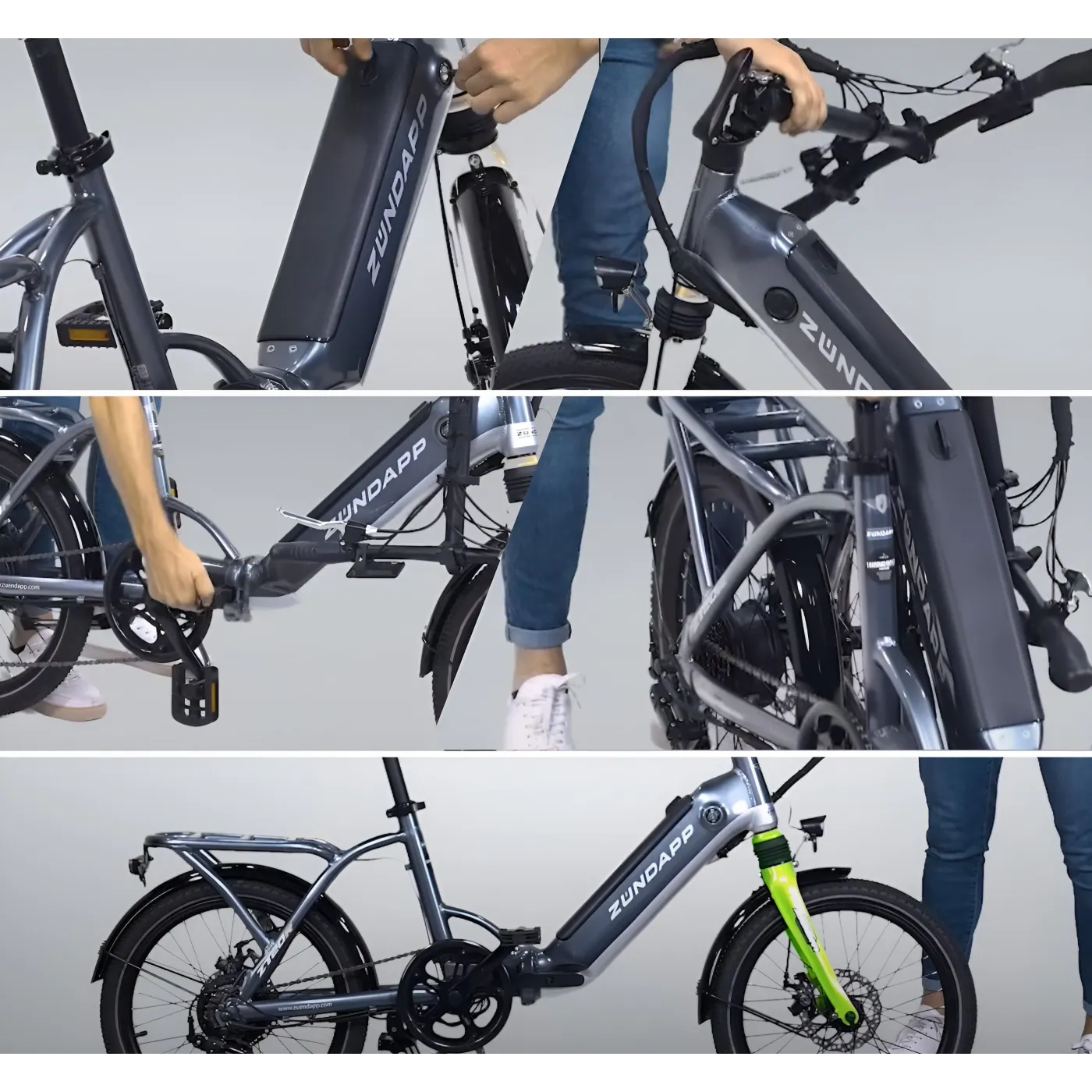 🚲 Składany Zundapp ZT20R łączy w sobie zalety konwencjonalnego roweru składanego z napędem elektrycznym, dzięki czemu jest elastycznym, przyjaznym dla środowiska środkiem transportu w miastach. Nadaje się zarówno do dojazdów do pracy, jak i na zakupy, łącząc codzienny sportowy charakter z praktycznością.