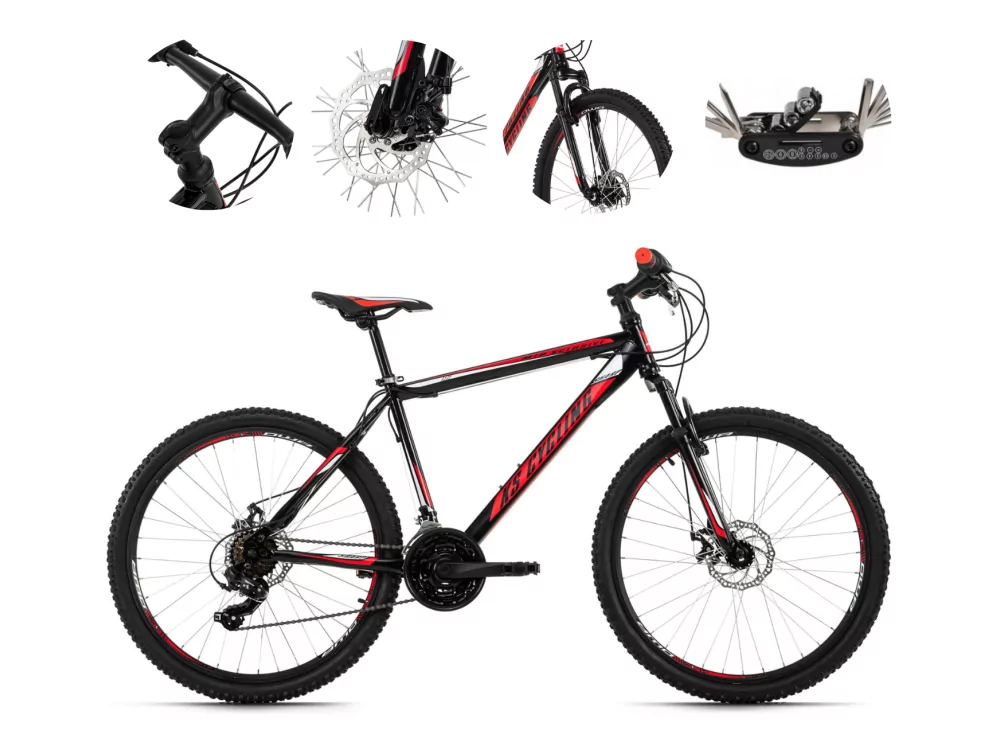 ✔️ Duże opony o wymiarach 26" x 2,10" zapewniają doskonałą przyczepność do podłoża i komfortową jazdę zarówno po asfalcie, jak i po nierównym terenie. Dodatkowo rower wyposażony jest w dzwonek, który pozwala ostrzec innych użytkowników drogi o naszym zbliżaniu się.