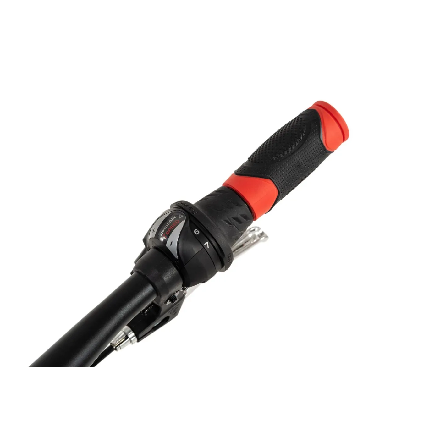 👉 Rower wyposażony jest w 21-biegową przerzutkę Shimano Tourney, która umożliwia szybkie i płynne zmiany biegów, dostosowując się do różnorodnego terenu. Manetka obrotowa Shimano RevoShift pozwala na łatwe i precyzyjne sterowanie przerzutką podczas jazdy.