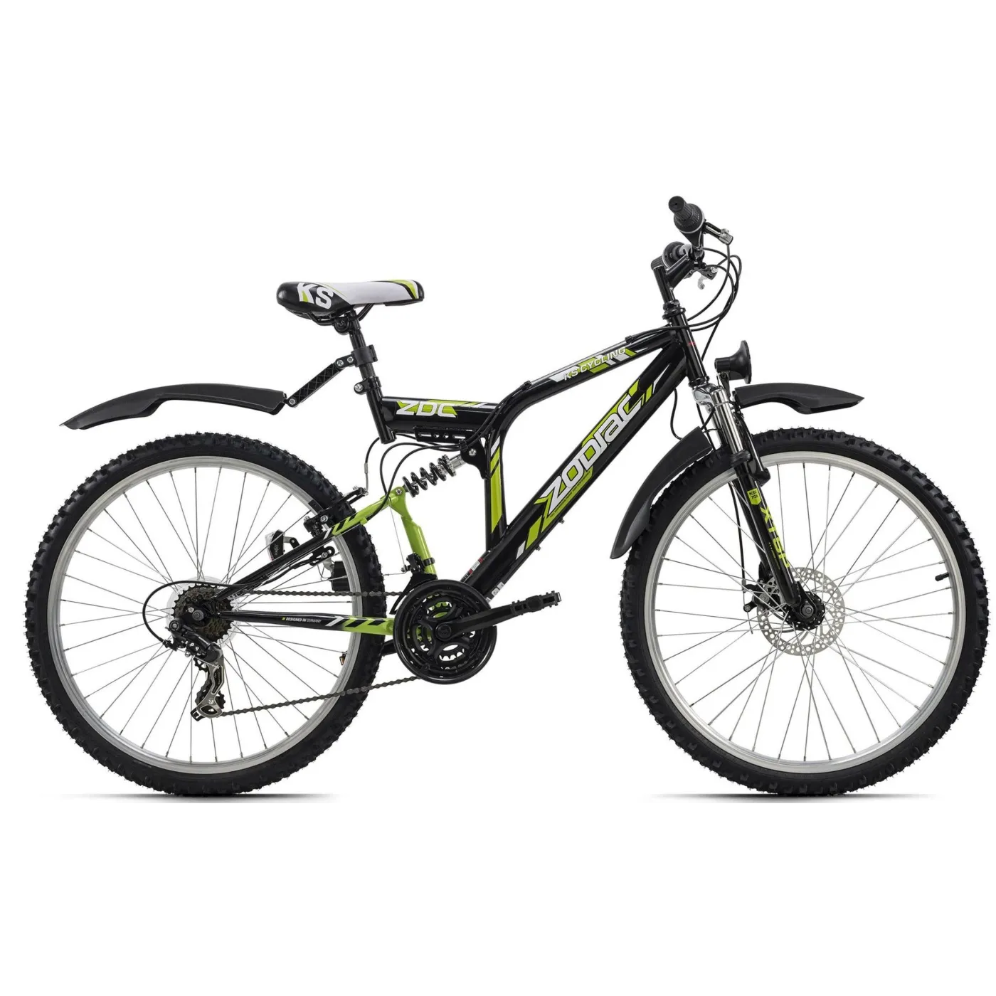 KS Cycling Zodiac z kołami 26" oraz pełnym zawieszeniem to idealny rower dla początkujących kolarzy górskich! Wyróżnia się pełną amortyzacją, zastosowaną kolorystyką oraz dodatkami - abyś zawsze był w centrum uwagi! Model jest wyposażony w 21-biegowy system przerzutek, które są wygodnie obsługiwane za pomocą obrotowych manetek Saiguan. Dodatkowo rower wyposażony jest w hamulce V-brake oraz tarczowe, wszystko to w trosce o zapewnienie Ci pełnej kontroli na jednośladem.