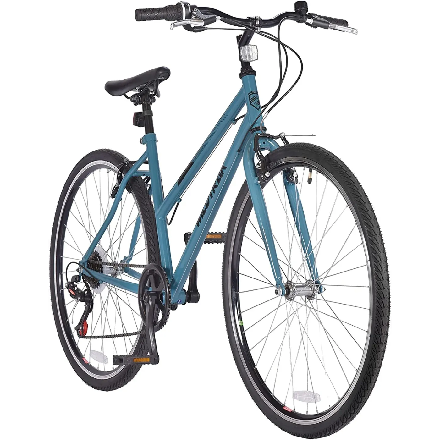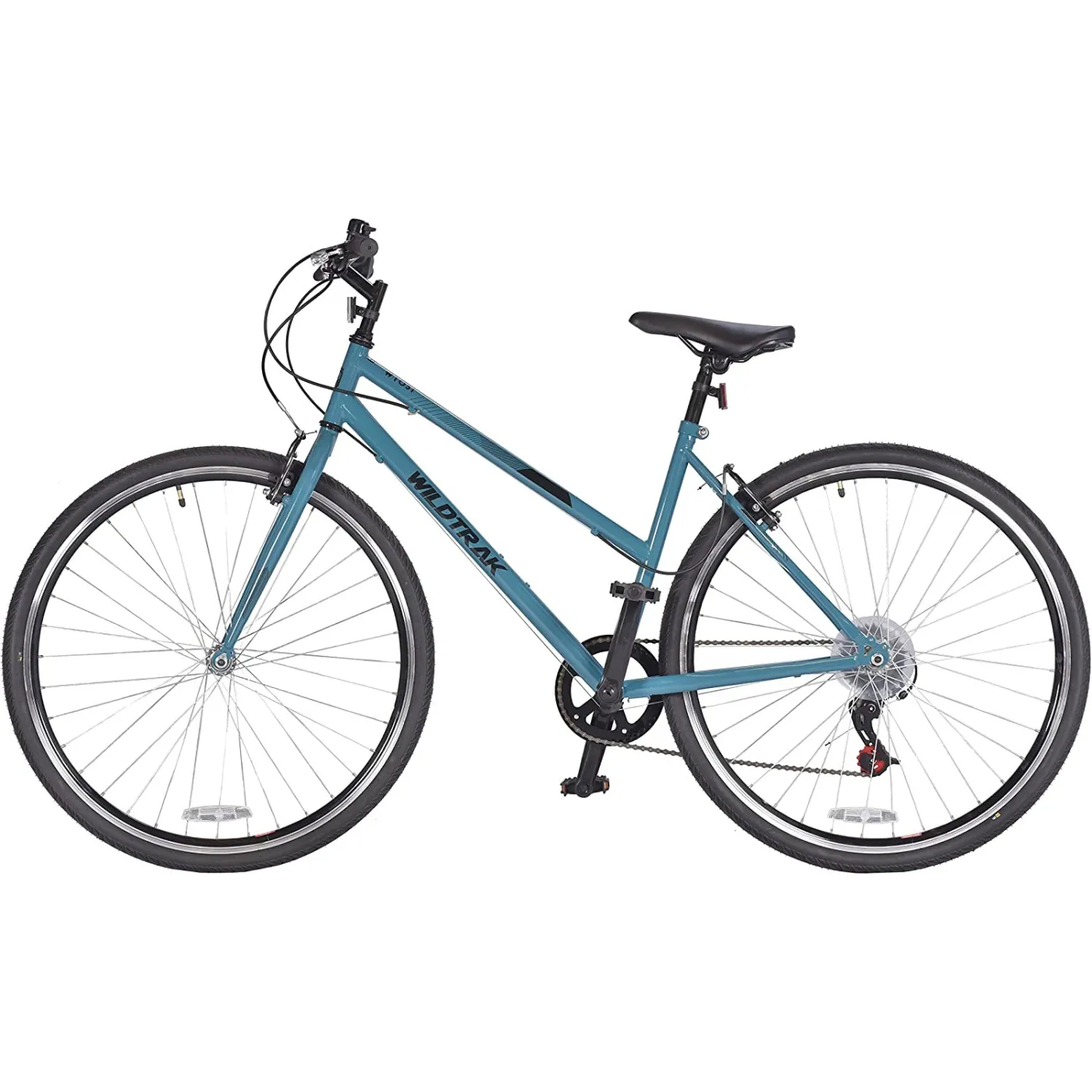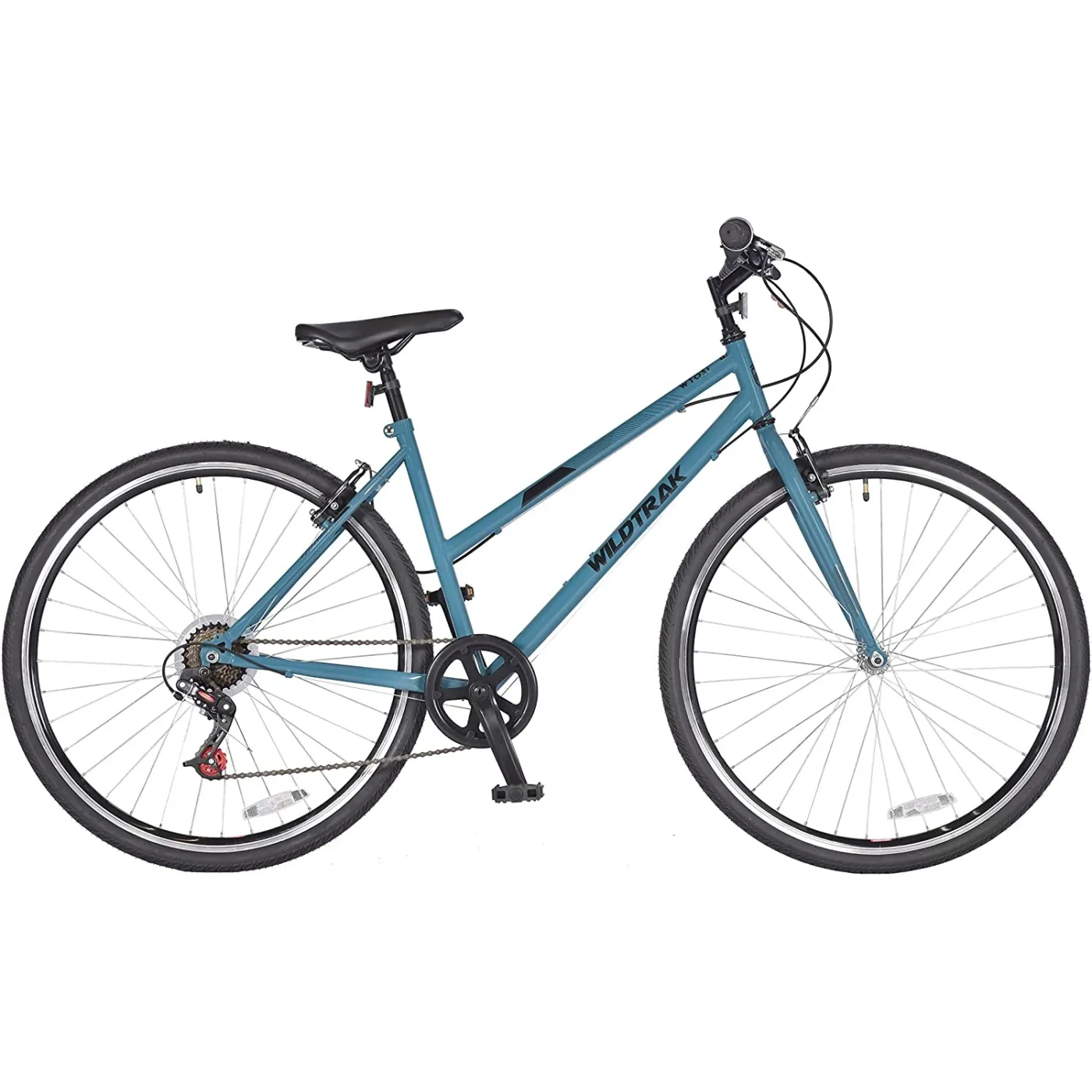 Z 28-calowym rowerem trekkingowym Wildtrak jesteś doskonale przygotowany do pokonywania długich dystansów w wolnym czasie lub korzystania z roweru w życiu codziennym. Ten rower przekonuje łatwymi w utrzymaniu, wytrzymałymi komponentami, przyjemnymi wrażeniami z jazdy i najlepszym stosunkiem ceny do wydajności. Dzięki 6 biegom w napędzie łańcuchowym możesz bez problemu wspinać się na każde wzniesienie. Hamulce szczękowe wykonują wszystkie procesy hamowania szczególnie precyzyjnie i szybko i wymagają znacznie mniej konserwacji niż hamulce tarczowe.