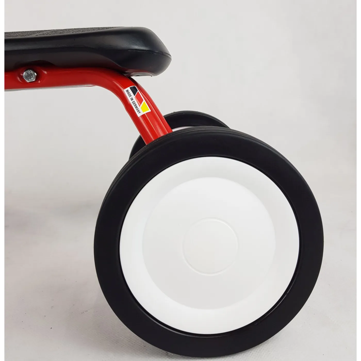 - Posiada ograniczenie kąta skrętu kół, ponieważ pojazd powinien być stabilny dla maluchów zaczynających swoją przygodę z rowerkami