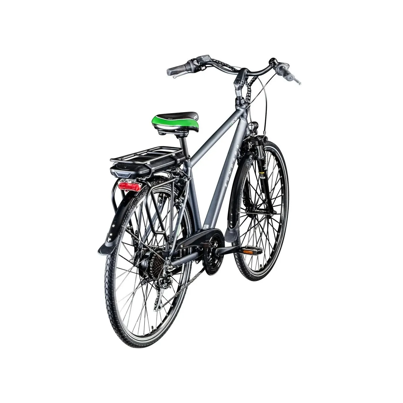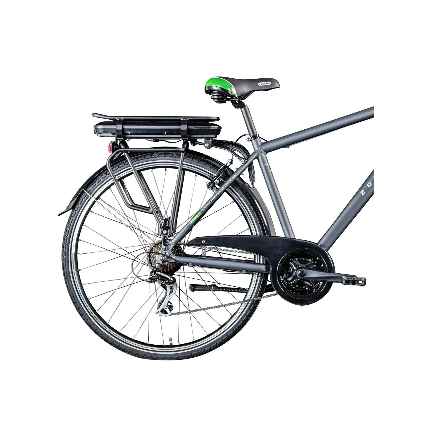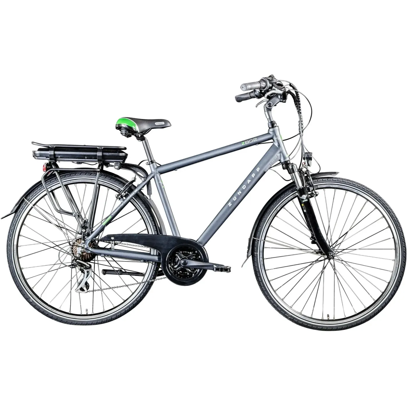 Zundapp Z802 to e-rower wprost idealny zarówno na długie wycieczki, jak i na co dzień i nigdy Cię nie zawiedzie. Podstawową konstrukcją e-roweru jest lekka aluminiowa rama diamentowa połączona z amortyzowanym widelcem o skoku 63 mm. W połączeniu z wygiętą do tyłu miejską kierownicą i mostkiem z regulacją kąta, rower zapewnia wygodną pozycję siedzącą, która pozwala na długą jazdę bez oznak zmęczenia. Napęd elektryczny z silnikiem piasty koła wspiera Cię mocą 250 watów do prędkości 25 km/h. Z baterią bagażnika 374.4 Wh możesz przejechać od 30 do 100 km.