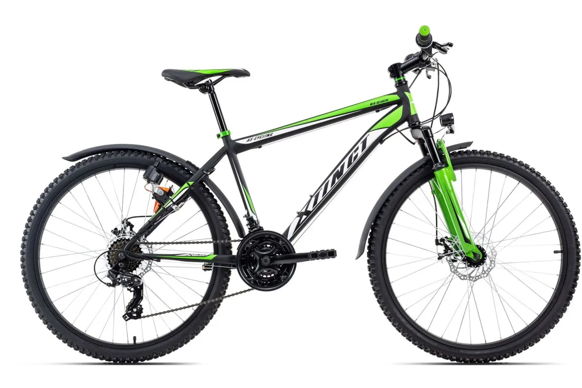 Rower górski Xtinct firmy KS Cycling zachwyca nie tylko niesamowitym designem, ale także jego wyposażeniem, które naprawdę robi wrażenie! Wyposażony jest w 21-biegową przerzutkę z komponentami Shimano. Mechaniczne hamulce tarczowe z przodu i z tyłu zapewniają niezbędne opóźnienie. Ergonomiczne siodło idealnie wpasowuje się w ogólny obraz.
