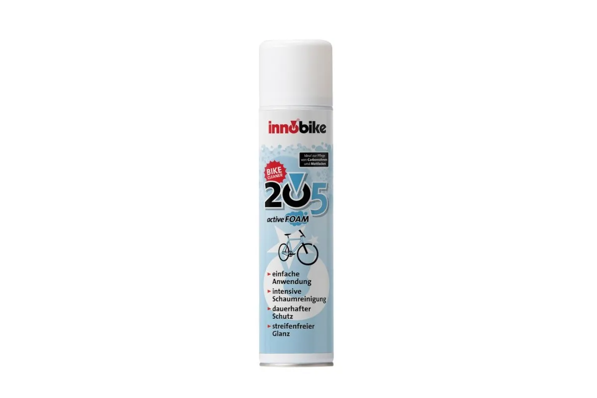 INNOBIKE 205 Bike Cleaner 205 to aktywna pianka czyszcząca najnowszej generacji. Jej drobnopęcherzykowa, długo utrzymująca się piana przylega nawet do powierzchni pionowych. Możliwość aplikacji bez wody sprawia, że jest idealnym towarzyszem w podróży. Skutecznie i niezawodnie usuwa pozostałości olejów i tłuszczów, pozostałości po owadach, sadzę, kurz i brud. Cleaner 205 jest neutralny i delikatny dla materiałów ramy i kół, w tym matowej farby. Nadaje połysk bez smug i tworzy antystatyczny film ochronny bez pozostawiania śladów.