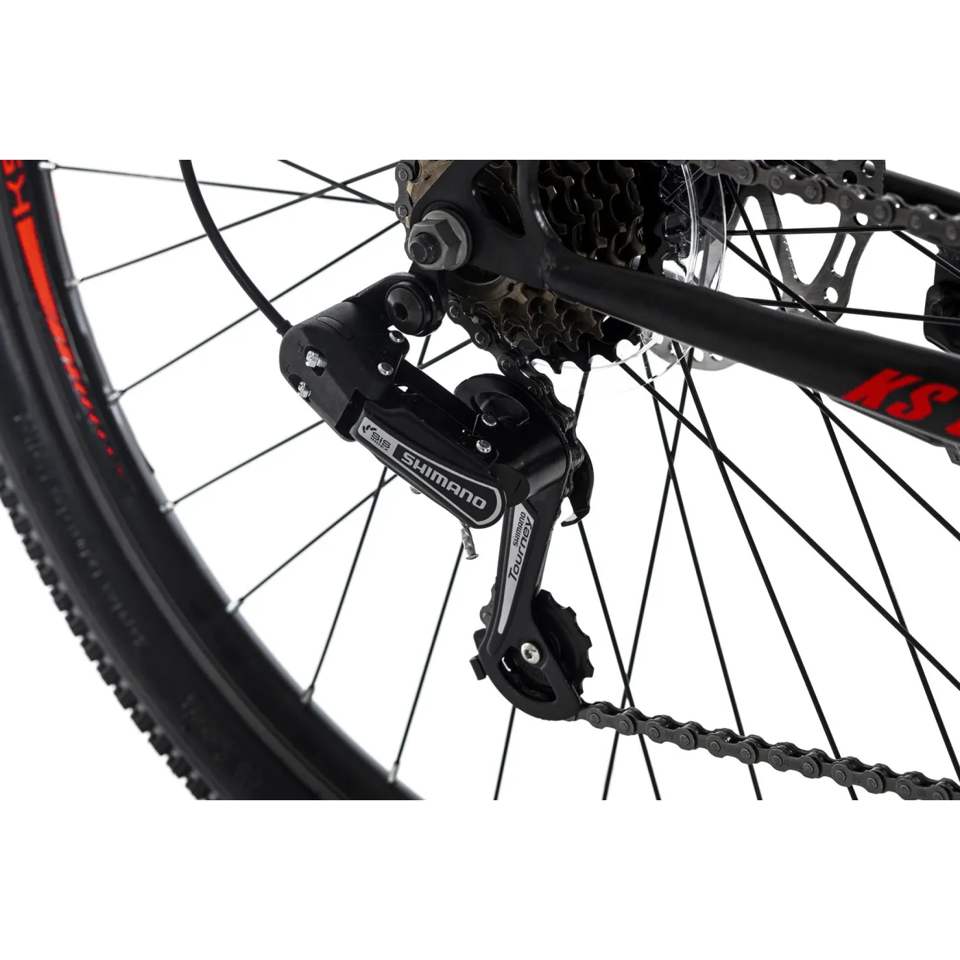 Model Catappa firmy KS Cycling to rower, który dzięki eleganckiej czarnej kolorystyce oraz kolorowym detalom pozwoli Ci przyciągnąć uwagę wszystkich. Jest wyposażony w 21-biegową przerzutkę z manetkami obrotowymi i komponentami Shimano. Zastosowane koła 29" lepiej toczą się po przeszkodach, mają lepszą przyczepność dzięki większej powierzchni styku i lepsze właściwości toczenia niż na przykład modele 26".
