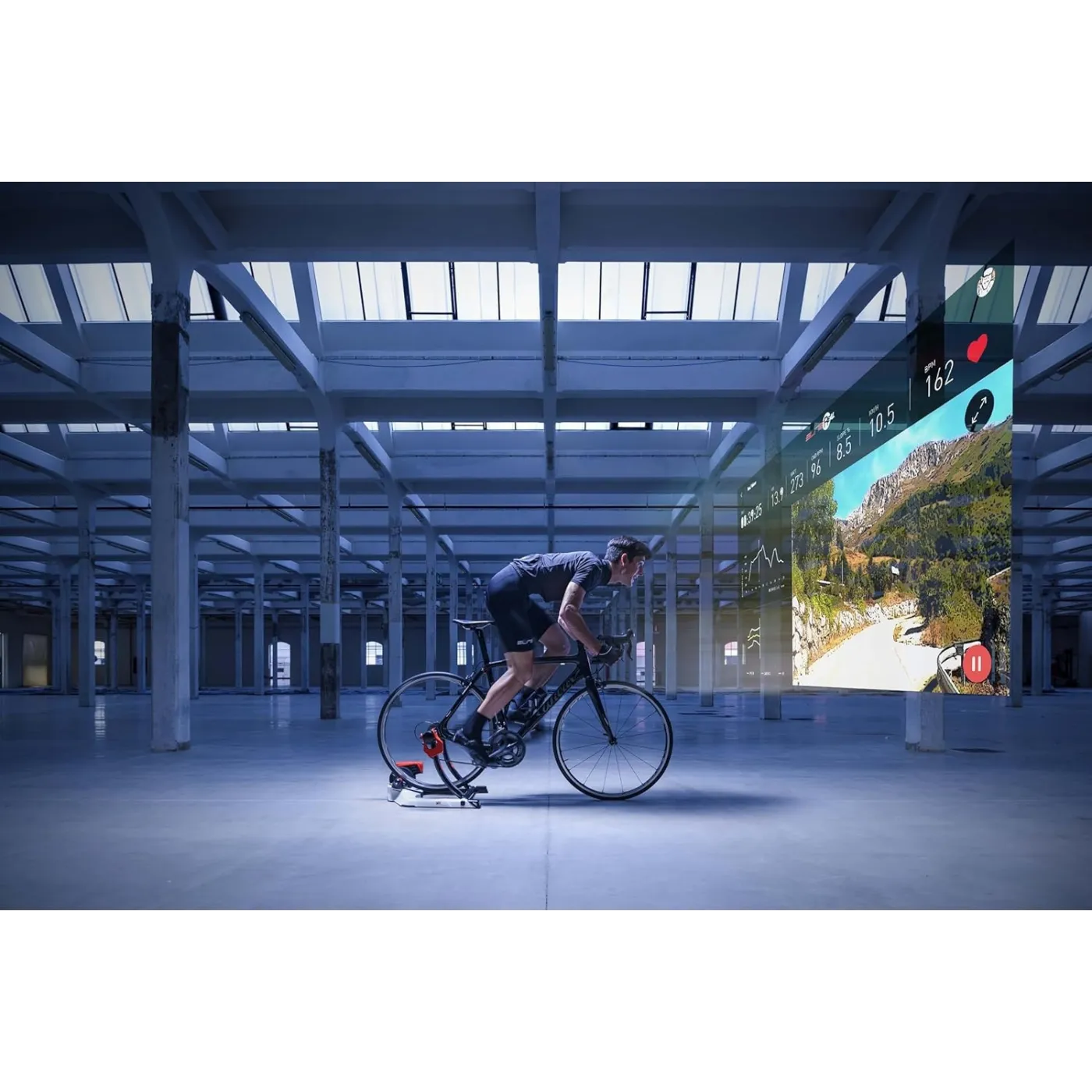 🛠️ Stabilność i łatwy montaż – Trenażer wyposażony jest w ramę wykonaną w technologii Qubo, która gwarantuje stabilne połączenie roweru z urządzeniem. Konstrukcja ta jest mocniejsza niż w tradycyjnych modelach fitness, co sprawia, że rowerzysta może w pełni skoncentrować się na treningu bez obaw o stabilność. Prosta instalacja umożliwia szybkie przygotowanie do jazdy – wystarczy przykręcić oś, a rama automatycznie dostosuje się do masy rowerzysty, dociskając rolkę do opony.
